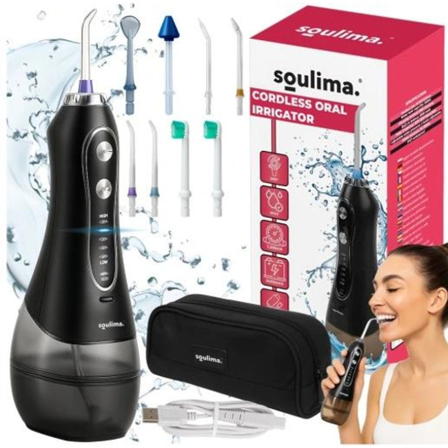 Перетворіть щоденний догляд за ротовою порожниною в комфортний ритуал разом з інноваційним іригатором SOULIMA PowerClean — розумним пристроєм для комплексного очищення зубів, ясен, язика та навіть носових проходів. Потужний тиск води, універсальні насадки та 5 режимів роботи — усе для вашого здоров'я та комфорту.Переваги товару: