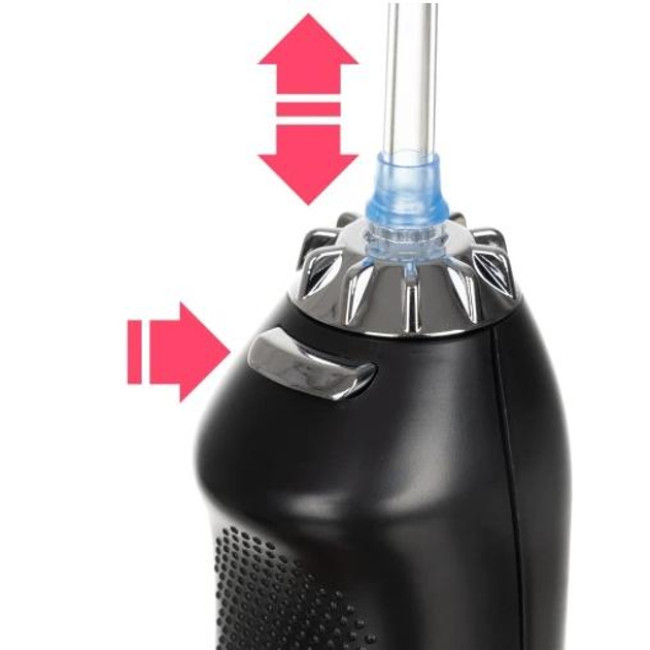 - Глибоке очищення важкодоступних ділянок — потужні пульсації від 800 до 1200 імпульсів за хвилину ефективно видаляють залишки їжі та бактеріальний наліт — краще, ніж зубна нитка або щітка.