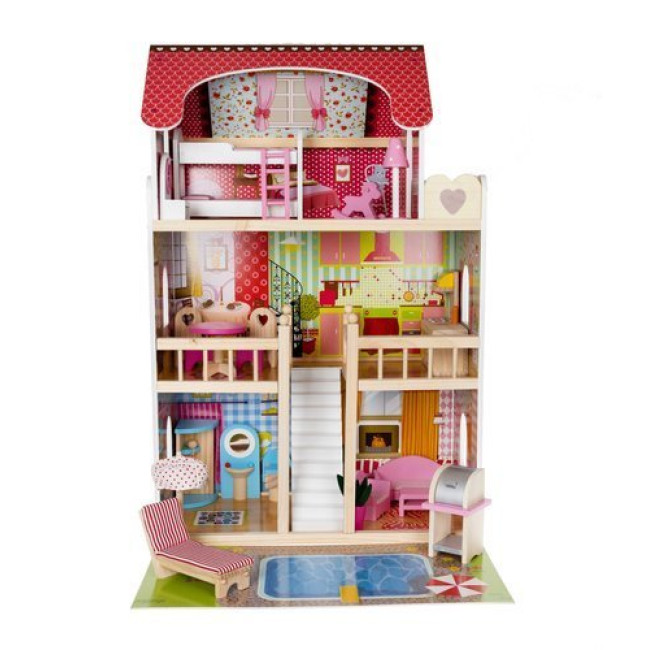 Дерев'яний ляльковий будиночок - вілла з басейном D11251