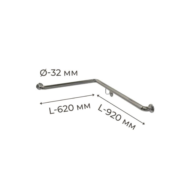 Поручень для людей з інвалідністю (МГН) настінний INVO для внутрішнього кута правий і лівий, розмір 620х920 мм