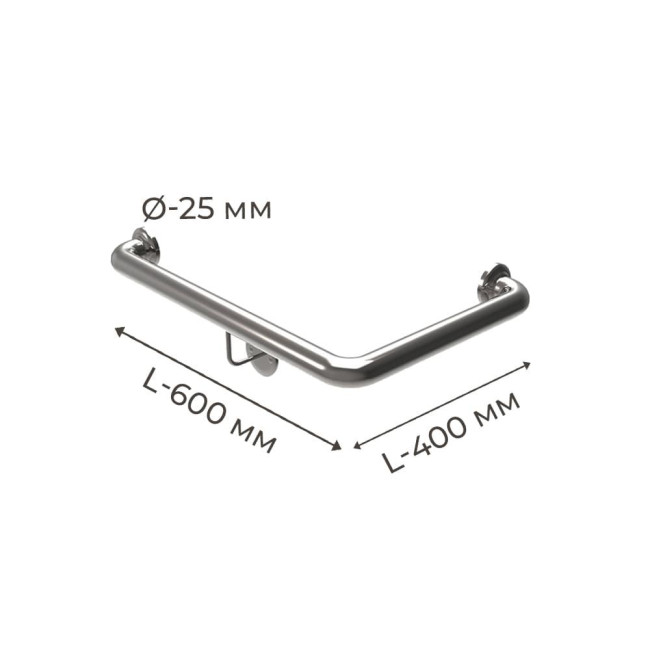 Поручень для людей з інвалідністю (МГН) настінний INVO для зовнішнього кута правий і лівий, розмір 600х400 мм, D