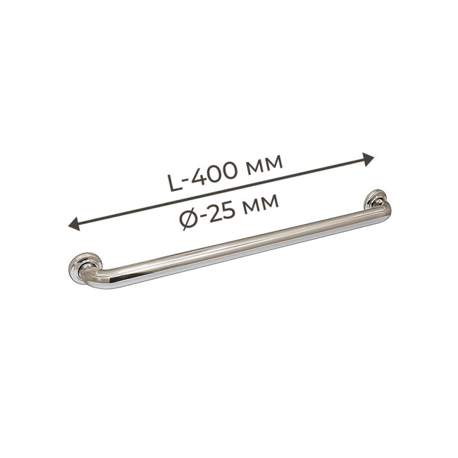 Поручень для людей с інвалідністю (МГН) прямий настінний INVO з нержавіючої сталі, L- 400 мм, D труби - 25 м
