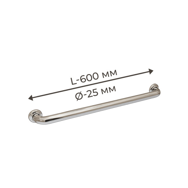 Поручень для людей з інвалідністю (МГН) прямий настінний INVO з нержавіючої сталі, L- 600 мм, D труби - 25 мм