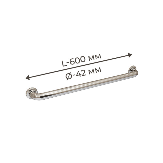 Поручень для людей з інвалідністю (МГН) прямий настінний INVO з нержавіючої сталі, L- 600 мм, D труби - 42 мм