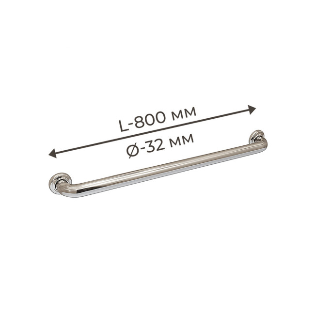 Поручень для людей з інвалідністю (МГН) прямий настінний INVO з нержавіючої сталі, L-800 мм, D труби - 32 мм