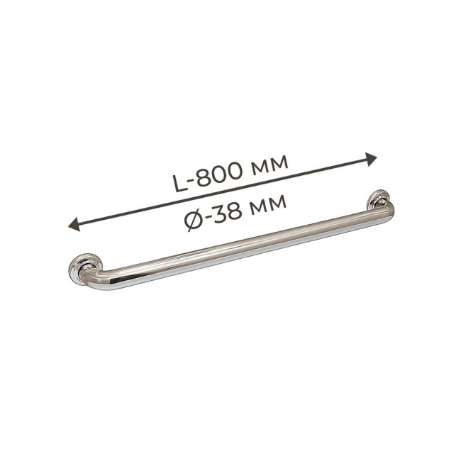 Поручень для людей з інвалідністю (МГН) прямий настінний INVO з нержавіючої сталі, L- 800 мм, D труби - 38 мм