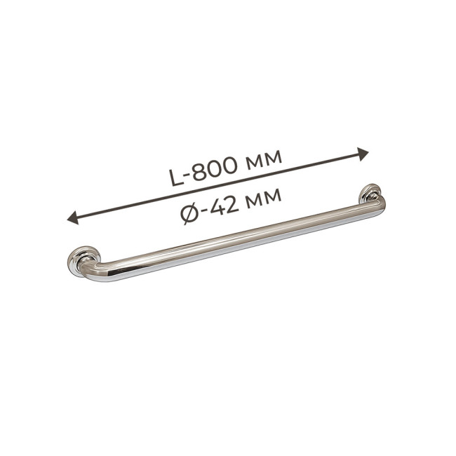 Поручень для людей з інвалідністю (МГН) прямий настінний INVO з нержавіючої сталі, L-800 мм, D труби - 42 м