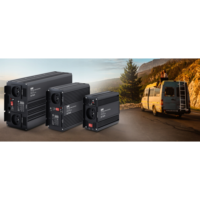 Инверторы Newell с чистой синусоидой выпускаются мощностью 500 Вт, 1000 Вт и 2000 Вт, а также модели с модифицированной синусоидой и версии 24 В / 230 В.