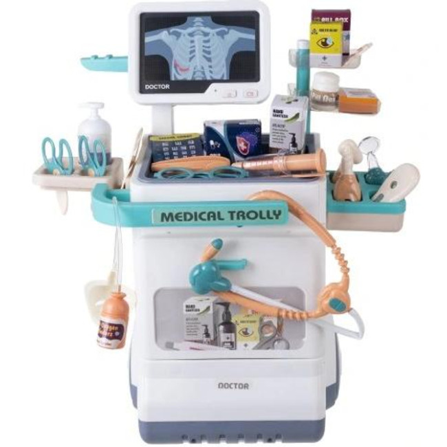 Детский медицинский набор Iso Trade – Маленький доктор XXL на тележке с ЭКГ и рентгеном, 26 предметов