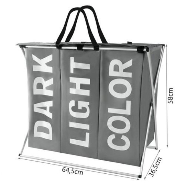 КОРЗИНА ДЛЯ БЕЛЬЯ ТЕМНОГО СВЕТЛОГО ЦВЕТА С 3 ОТДЕЛЕНИЯМИ ДО 3 ОТДЕЛЕНИЙ – благодаря этому современному решению вы можете сортировать белье на начальном этапе, но не только это, но и другие домочадцы также могут его сортировать, нужно только проинструктировать их соответствующим образом.
