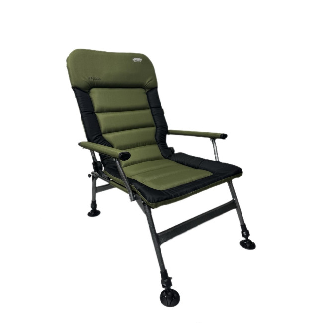 Сиденье выполнено из сверхпрочной ткани Oxford 1200 с водоотталкивающими свойствами. Внутри — мягкий поролон толщиной 4 см, который гарантирует комфорт даже во время многочасового сидения. Подголовник с дополнительным слоем мягкого наполнителя (6 см) снимает нагрузку с шеи и способствует полному расслаблению.