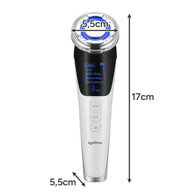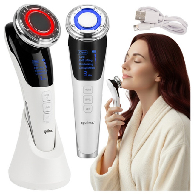 Сочетает безигольную мезотерапию, EMS-лифтинг, LED-светотерапию, ультразвуковой массаж и термотерапию (тепло/холод). Благодаря 5 режимам работы он подходит для очищения, увлажнения, подтягивания и омоложения кожи. Легкий в использовании, безопасный и безболезненный – отличное решение для ухода за лицом и шеей в домашних условиях. Soulima 25888 - это абсолютно инновационное, универсальное и безопасное устройство для домашнего ухода за кожей лица, надежный микротоковый лифтинг-масажер для лица. С ним салонные косметологические процедуры в домашних условиях стали доступными, а сочетание самых современных технологий — световых волн и электрических микроимпульсов, в комплексе оказывает позитивное влияние на кожу и ее состояние.