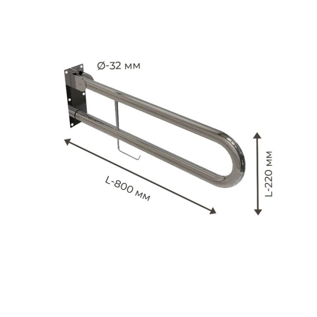 - Откидная конструкция позволяет экономить пространство, когда поручень не используется.