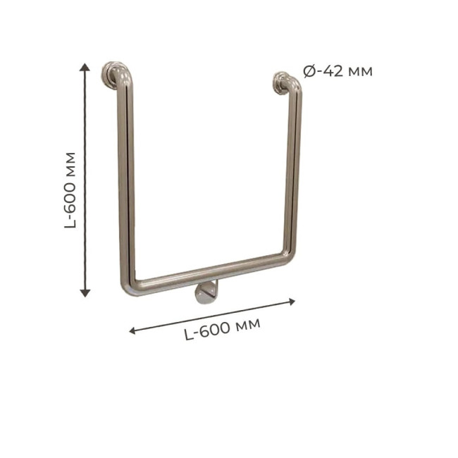 Поручень для людей с инвалидностью (МГН) настенный INVO П-образный, размер 600х600 мм, D трубы - 42 мм