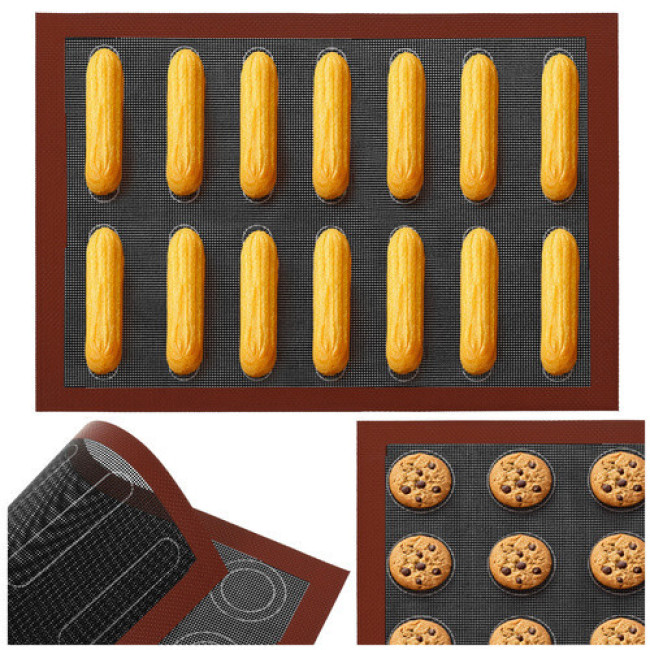 Коврик подходит не только для выпечки печенья и десертов в духовке, но и для кондитерских изделий и раскатки теста. Это идеальное решение для кухни, кондитеров и любителей выпечки, кто хочет улучшить свои кулинарные навыки и получить удовольствие от приготовления пищи.