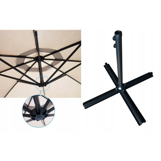Большой купол из 8 сегментов покрыт полиэстером и может свободно регулироваться по высоте, углу и стороне наклона.