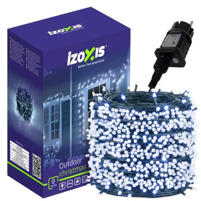 Светодиодная гирлянда на ёлку 500 LED, холодный белый свет, 35 м, IZOXIS, IP44, 8 режимов + эффект вспышки