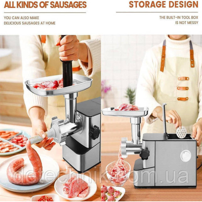 Благодаря мощному двигателю из чистой меди, эта мясорубка и начинка могут измельчать 3 кг мяса в минуту. Быстро и удобно, поэтому вы можете измельчить большие куски и мясо за меньшее время. Кроме того, он более крепкий, поэтому вы можете использовать его в течение многих лет.