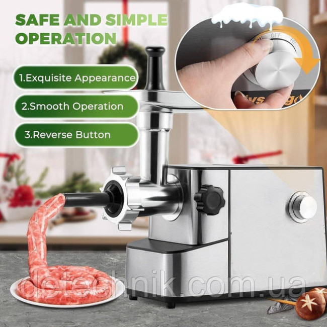 Электрическая мясорубка Royalty Line MG9602 с мощным двигателем из чистой меди, которая может эффективно и быстро измельчать мясо, удовлетворяя все ваши потребности в измельчении!