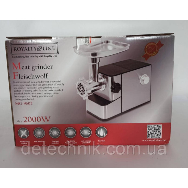 Мясорубка электрическая Royalty Line MG9602 2000 Вт с 3 режущими пластинами и наполнителем для колбас