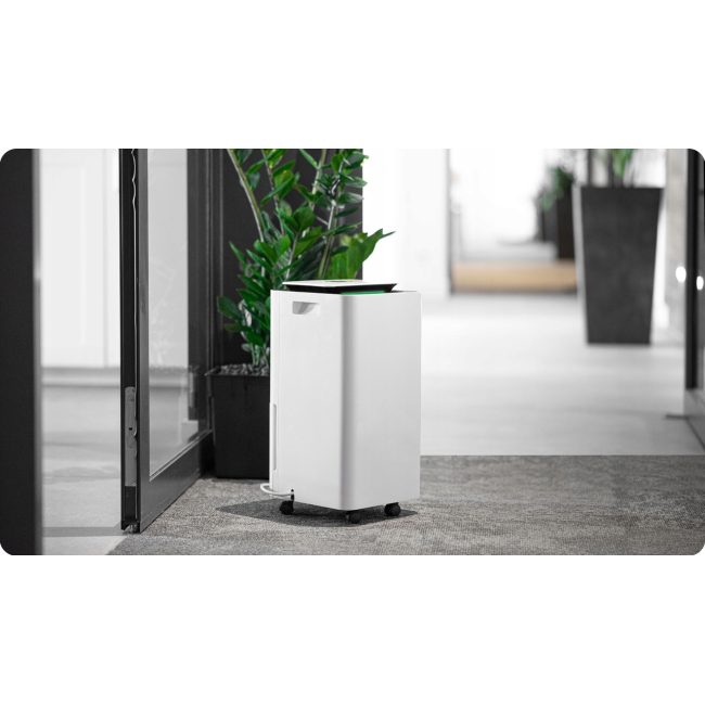 Современная панель управления soft-touch, расположенная в верхней части осушителя, обеспечит максимальный комфорт. С ее помощью можно регулировать все рабочие параметры. На дисплее отображается текущая влажность воздуха в помещении и выбранные функции. Вы также можете легко активировать ночной режим, при котором панель погаснет, позволяя вам комфортно спать или просто экономить электроэнергию.