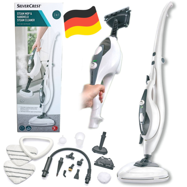 Пароочиститель, паровая швабра SilverCrest SDM 1500 D3 2в1 (1500 Вт, 350 мл, Германия)     Описание: Бренд является частью немецкого холдинга Schwarz Group, пятого по величине розничного торговца в мире. Silvercrest продолжает развивать амбициозные планы и инвестировать в технологии и производство своей продукции. Silvercrest - это доступная техника и высокие технологии для любого покупаетля. Надежная, прочная, практичная и элегантная. Вся продукция марки Silvercrest® проходит тестирование в соответствии со строгими критериями безопасности в известных институтах Германии. Торговая марка Silvercrest является недорогой, но качественной бытовой техникой для дома и разрабатывается исключительно строго нормам и стандартам качества.   SilverCrest SDM 1500 D3 2в1 — паровая швабра, которая эффективно очищает различные типы поверхностей. Водяной пар удаляет даже въевшуюся грязь — кроме того, он дезинфицирует и обезжиривает очищаемые поверхности .  Прибор не оставляет известкового налета, разводов и не повреждает очищаемые поверхности.  Все это без использования химических чистящих средств – работа устройства основана только на подаче пара под соответствующим давлением.  Подходит для многих поверхностей , в т.ч. ламинат, деревянные полы, мрамор, резина, керамика и винил.  Также идеально подходит для деликатных полов, таких как паркет. Температура пара, уничтожает микроорганизмы . которые особенно опасны для детей и аллергиков.  Горячий пар убивает грибки, вирусы, бактерии и паразитов.  Подвижная ножка позволяет без проблем мыть под мебелью и тщательно убирать во всех углах. Наиболее важные особенности паровой швабры SilverCrest SDM 1500 D3 2в1 : Очищает, обезжиривает и дезинфицирует при 100°C Не оставляет разводов и отложений Подходит для многих поверхностей, в т.ч. ламинат, деревянные полы, мрамор, резина, керамика и винил Также идеально подходит для деликатных полов, таких как паркет. Возможна также чистка текстильных поверхностей, в т.ч. ковры, обивка Экологически-гигиеническая уборка без использования химических средств Тщательная очистка всех твердых поверхностей благодаря паропроизводительности 25 г/мин. уничтожает до 99% вирусов, а также все распространенные бытовые бактерии, микробы и клещи Готов к работе примерно через 30 секунд Легко заполняемый съемный резервуар для воды емкостью 350 мл. Подвижная ножка позволяет без проблем мыть под мебелью и тщательно убирать во всех углах.   Почему стоит купить паровую швабру SilverCrest SDM 1500 D3 2в1? Пароочиститель-паровая швабра SilverCrest SDM 1500 D3 - это универсальный инструмент для уборки дома, который обладает рядом преимуществ по сравнению с обычными способами уборки. Вот несколько причин, почему стоит купить этот инструмент: Эффективность: паровая швабра SilverCrest SDM 1500 D3 использует паровую струю, которая позволяет эффективно очищать поверхности от грязи, жира и других загрязнений. Она также убивает до 99,99% бактерий и грибков, что делает уборку более гигиеничной. Удобство использования: пароочиститель-паровая швабра имеет компактный дизайн, что делает ее простой в использовании и хранении. Она также быстро нагревается и имеет длинный шнур, что позволяет легко очищать большие поверхности. Многофункциональность: SilverCrest SDM 1500 D3 поставляется с различными насадками, которые позволяют использовать ее для различных задач уборки, таких как очистка ко