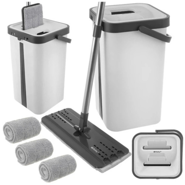 Набор для уборки Ruhhy плоская швабра с отжимом и двухкамерным ведром 11 л, 3 насадки в комплекте (27232)