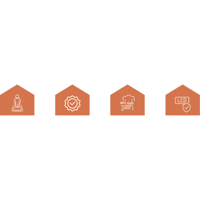 - ЖК-дисплей - мгновенно отображает 8 показателей: вес, форма тела, процент жира в организме, ИМТ, мышечная масса, костная масса, количество воды в организме и висцеральный жир