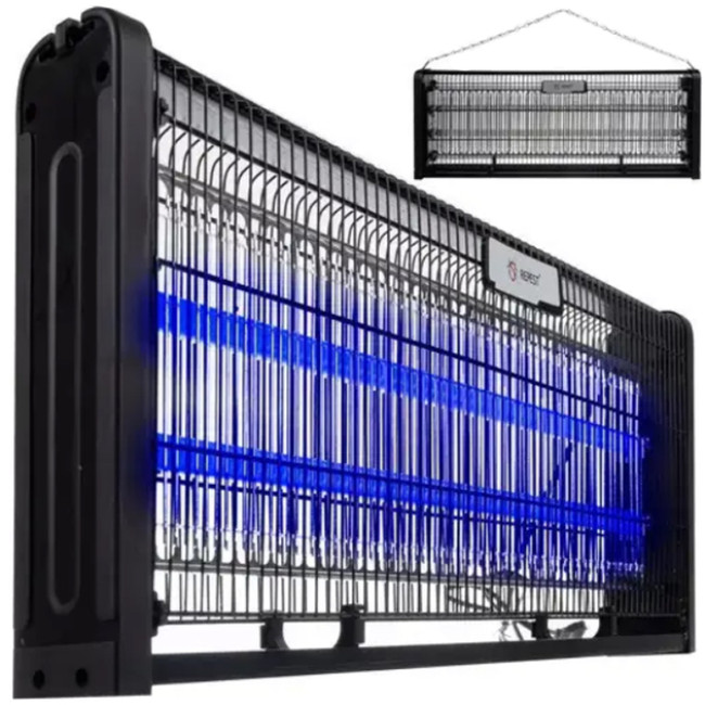 Инсектицидная УФ лампа ловушка для насекомых Repest 21206 - это современное эффективное устройство, незаменимое в каждой квартире, загородном доме на даче или в магазине, которое комплексно решает проблему навязчивых насекомых в нашей среде. Уничтожитель приманивает насекомых УФ-светом на специальной длине волны и бьет их током высокого напряжения.Инсектицидная лампа имеет очень простой принцип работы. Ультрафиолетовый свет, излучаемый люминесцентной лампой со специально подобранной длиной волны, чрезвычайно привлекателен для летающих насекомых, поэтому они залетают внутрь прибора. Люминесцентная лампа обернута специальной проволочной сеткой, расположенной перед источником света, по которому проходит ток высокого напряжения.Ток высокого напряжения, протекающий через сетку, вызывает поражение насекомых электрическим током и приводит к их гибели. Слышится тихий треск, мертвые насекомые падают на дно прибора, который необходимо регулярно очищать. Просто нужно купить инсектицидную лампу уничтожитель Repest 21206, чтобы избавиться от назойливых комаров и мошки.Особенности инсектицидной лампы уничтожителя насекомых Repest 21206Лампы для уничтожения насекомых популярны в городах, где насекомые могут доставлять неудобства, например, дома, на даче, в магазинах и ресторанах, в гостевых домах, на рыночных площадях, на складах и в других местах. Лампа Repest мощная и эффективная, работает на участке до 40 м.кв. Имеет 3 варианта крепления. Можно традиционно прикрутить к стене на крючки (не входят в комплект), можно повесить на имеющуюся в комплекте цепочку или же поставить на стол или разместить на полу.Инсектицидные лампы безопасны для людей и домашних животных благодаря безопасному диапазону ультрафиолетовой волны, а также наличию защитной решетки. По сравнению с аэрозолями прибор не выделяет никаких химических веществ.Особенности:Прибор приманивает УФ-светом, поражает электрическим током высокого напряжения, хранит мертвых насекомых для утилизации.Безопасен для людей и животных - работает без использования химических веществ, не выделяет вредных веществ.Используемые решетки дополнительно повышают безопасность детей.Эффективная защита от: комаров, мух, ос мошки и моли.Высокое напряжение 2500 В для надежного уничтожения насекомых.Ультрафиолетовый свет с длиной волны 365 нм привлекает насекомых, безопасен для человека и животных.Прочная конструкция из стали и высококачественного АБС-пластика.Лампы для уничтожения насекомых безопасны для нашего здоровья. Испускаемое ультрафиолетовое излучение совершенно безвредно для человека и домашних животных, а корпус из прочного АБС-пластика гарантирует безопасное и длительное использование лампы. Наличие защитной решетки защитит руки ваших детей и вас от удара током.Характеристики инсектицидной УФ лампы приманкиКорпус инсектицидной УФ лампы приманки выполнен из стали и высококачественного АБС-пластика, прочный и надежный. Уничтожитель снабжен 2-мя ультрафиолетовыми лампами, которые снабжены обмоткой с высоким напряжением. Рабочая честь защищена специальной металлической решеткой с обеих сторон для безопасности, особенно для детей. Питание осуществляется от сети 220-240 В с помощью встроенного кабеля.Характеристики:Тип: инсектицидная лампа приманка;Вид: уничтожитель насекомых;Мощность