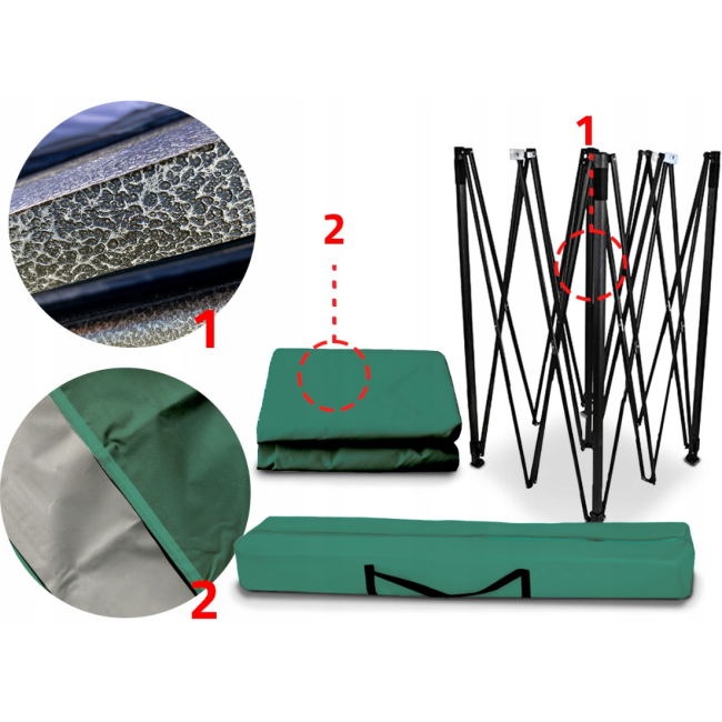 Система защелок позволяет легко собирать, разбирать и регулировать складной павильон.