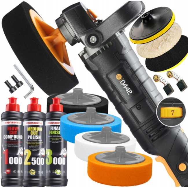 Кроме того, этот набор включает в себя набор полировальных паст Menzerna, разработанных для достижения различных эффектов полировки. Начните с агрессивной пасты Menzerna 1000 для удаления крупных дефектов, продолжите Menzerna 2500 для устранения средних дефектов, и завершите Menzerna 3000 для придания поверхности исключительного блеска без микроцарапин. Одной из особенностей является возможность бесступенчатой регулировки скорости, что позволяет с легкостью адаптироваться под любые условия и требования. Регулируемая скорость от 800 до 3200 мин-1 обеспечивается специальной гипоидной коробкой передач, что дает возможность выполнять даже наиболее деликатные задачи с точностью и минимальным пылением. В комплект поставки входят 4 полировальные губки разной жесткости для выполнения различных этапов полировки, а также запасные угольные щетки, шестигранный ключ и крепления на липучке. Все аксессуары упакованы в оригинальную упаковку, что гарантирует сохранность и удобство хранения. Полировочная машинка Majster Polska — это инструмент, который удовлетворит как профессионала, так и любителя, стремящегося к идеальному результату. Легкость в обращении, высокая эффективность и комплектация делают этот продукт отличным выбором для решения широкого спектра задач. Позаботьтесь о своем автомобиле, мебели или других объектах с помощью полировочной машинки Majster Polska и набора паст Menzerna — и наслаждайтесь результатами своего труда!