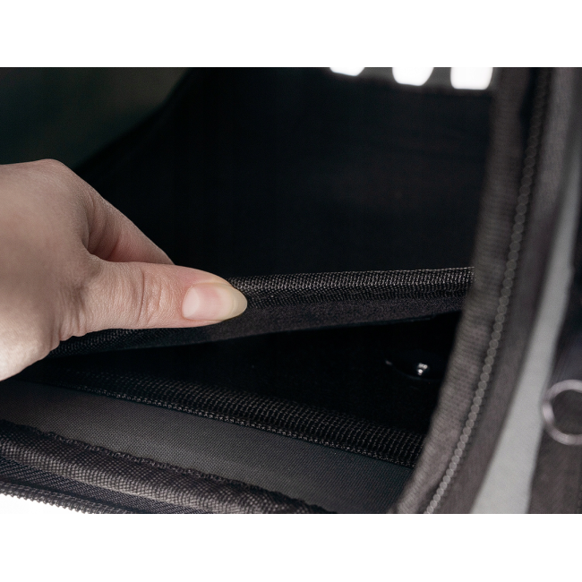 Транспортер оснащен специальной прочной ручкой, что обеспечивает чрезвычайно легкую и удобную переноску сумки с животным в руке. Кроме того, в комплект входит съемный ремешок длиной не более 1 метра. Таким образом, сумку можно свободно повесить на плечо. На ремне есть удобная наплечная защита.