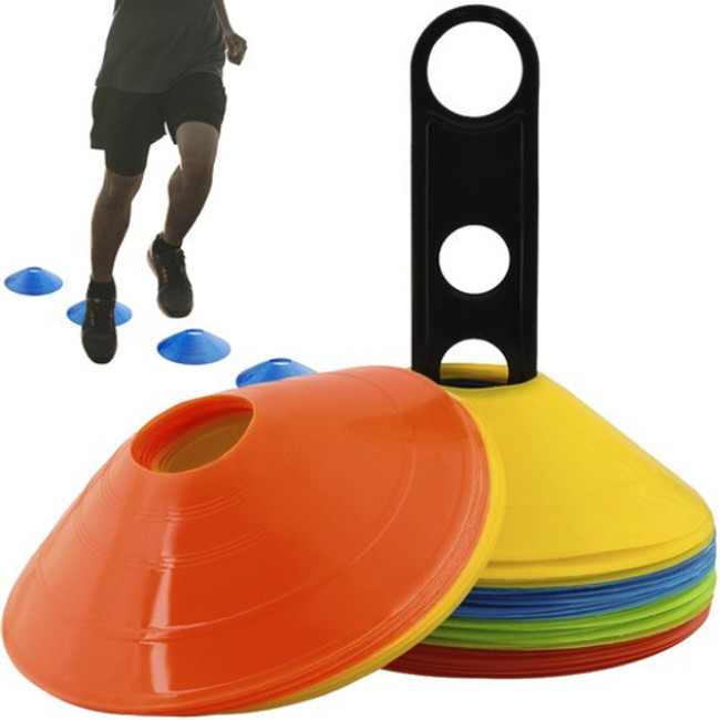 Конусы - фишки для разметки футбольного поля Trizand 50 шт на подставке + чехол (5725) Обустройство тренировочного пространства позволяет точно определить объем выполняемых упражнений и тем самым повышает эффективность двигательной активности.Набор из 50 конусов для упражнений позволяет обозначить места или зоны, позволяющие с необходимой точностью выполнить запланированную тренировку. 5 ЦВЕТОВ– позволяет обозначить разные зоны для отдельных людей, групп или комплексов упражнений. 50 ШТУК— 10 штук каждого цвета предоставляют широкие возможности для разметки мест на той или иной тренировочной площадке. ПОДСТАВКА С РУЧКОЙ– помогает эффективно хранить и переносить диски, расположенные на нем вертикально. ШИРОКИЙ ОБЛАСТЬ ПРИМЕНЕНИЯ– предназначен для тренировок как в открытых, так и в закрытых помещениях с различными типами поверхностей. Характеристики Материал: конусы (ПЭ), подставка (ПП), сумка (преобладающий материал: нейлон, остальные: ПП) Цвета: красный, синий, оранжевый, зеленый, желтый Размеры комплекта: 20 х 24 см Размеры 1 конуса: 20 х 4,5 см Вес 1 конуса: 19 г Вес комплекта 0,95 кг Вес набора с упаковкой: 1,09 кг Комплектация 50 конусов Подставка Сумка