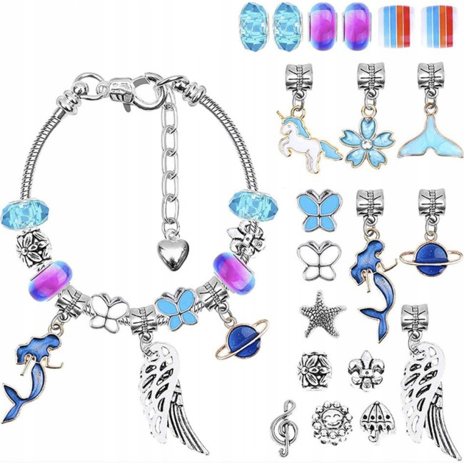 В комплект входят подставка для бусин и 10 украшений для нанизывания. Крепления для подвесок надежные и простые: достаточно открутить одну сторону браслета, прикрепить подвеску и снова закрутить. Смешивайте и сочетайте бусины, создавая эффектные аксессуары для любого наряда или случая. Регулируемые браслеты и ожерелья подстроятся под любую руку или шею, создавая идеальный штрих к вашему образу.