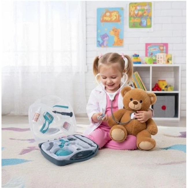 Этот набор поможет вашему ребенку преодолеть страх перед врачами и развить такие качества, как внимательность, забота и фантазия. Прекрасный подарок как для мальчиков, так и для девочек, которые обожают ролевые игры.