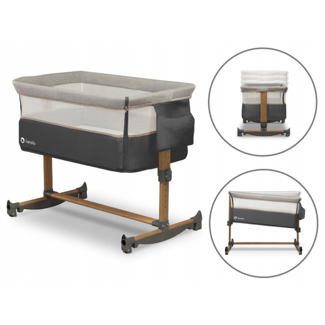 Кроватка приставная 3в1 Lionelo Leonie Grey Stone