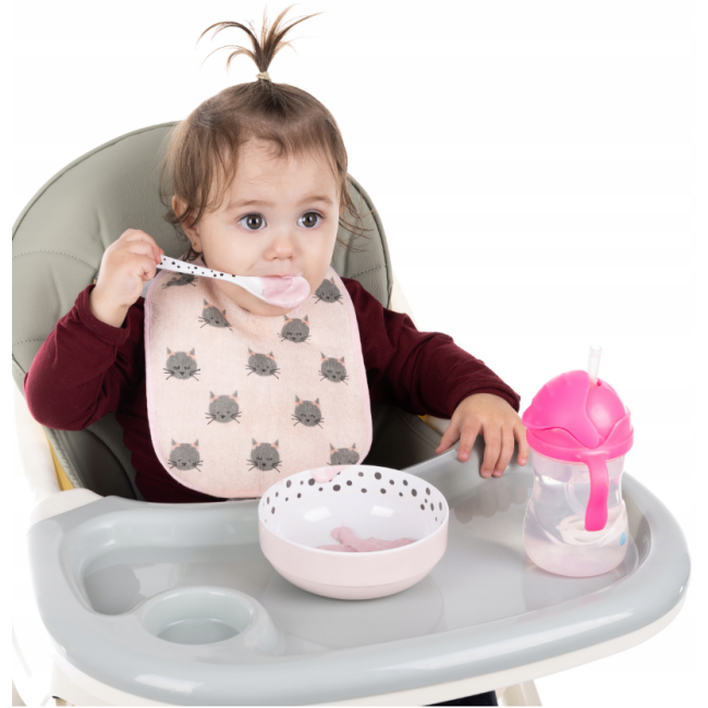 СЪЕМНЫЙ ПОДНОС В КОМПЛЕКТЕ СО СТОЛОМ - столик на стуле KRUZZEL регулируется в 3 шага, это идеальное решение для детей, оно дает им свободу передвижения и не стесняет их. Кроме того, верх можно полностью снять. На стол можно поставить поднос, чтобы подать, например, еду. Поднос имеет углубление для чашки/бутылки, легко моется и устойчив к температурам от -20 до 100 ?C. Что это значит для вас и вашего ребенка? Можно дать ребенку: мороженое, теплый суп и даже очень теплое молоко.