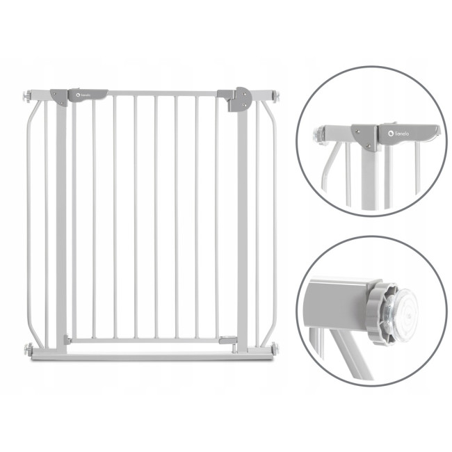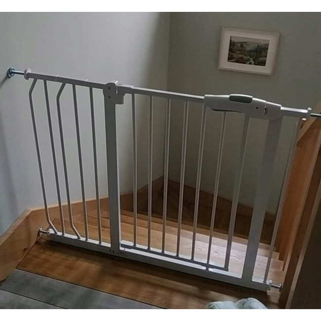 Калитка и рама из прочного металла. Элементы, используемые в воротах, имеют специально округленные овальные формы, так что у ребенка не будет возможности вставлять и зажимать пальцы.