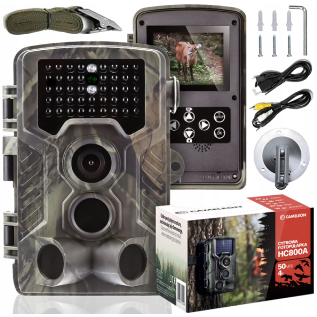 В комплект входить фотоловушка, кріпежний ремінь, кабель живлення, кабель для імпорту даних на ПК, монтажний кронштейн з рухомою головкою та інструкція польською мовою. Це робить Фотоловушку FHD 50Mpx не лише функціональною, але й максимально зручною у використанні.