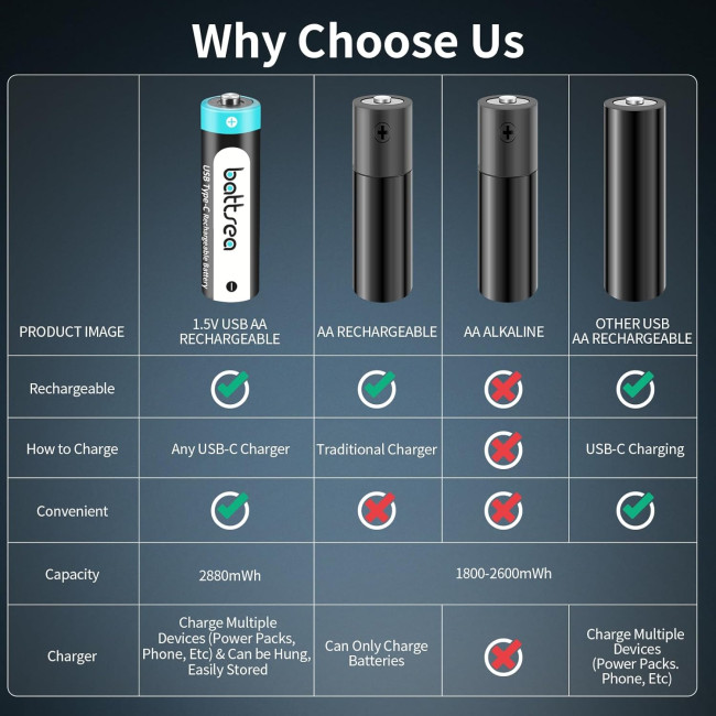 Не важливо, чи вам потрібні батарейки для дитячих іграшок, чи для складніших приладів, Battsea AA незмінно вас не підведуть. Забудьте про часті заміни і непередбачені паузи в роботі. З Battsea ви завжди на крок попереду. Вибір очевидний: Battsea — це якість, на яку ви заслуговуєте, разом із привабливою ціною та довготривалою надійністю.