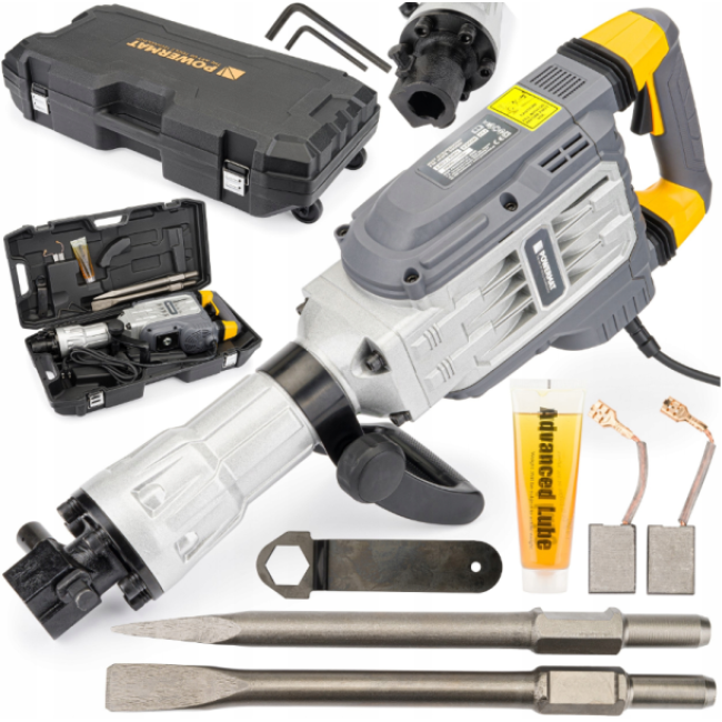 Відбійний молоток Powermat 65J 3300Вт — це потужний інструмент, який став невід'ємною частиною арсеналу як професійних будівельників, так і аматорів. Завдяки високій потужності 3300 Вт та потужності удару 65 Дж, цей молоток здатен розбивати бетонні конструкції, стіни та інші тверді поверхні з легкістю.Переваги
