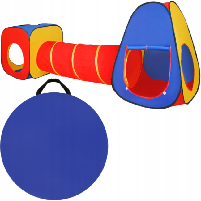 МНОГОФУНКЦИОНАЛЬНОСТЬ - благодаря трем соединенным частям можно использовать как палатку, полосу препятствий или элемент детской площадки; У него много входов/выходов, что делает развлечение еще более привлекательным.РАСКЛАДНОЙ - механизм раскладывания состоит из эластичных проволок, которые автоматически подстраиваются под структуру, в которую вшиты, благодаря чему палатку можно развернуть всего за несколько секунд.РАЗНОЦВЕТНАЯ - интенсивные и разнообразные цвета в разных частях палатки привлекают внимание и поощряют веселье.ЧЕХОЛ В КОМПЛЕКТЕ - в комплект входит чехол, который в сложенном виде подходит для всей палатки, что обеспечивает удобство хранения и транспортировки.