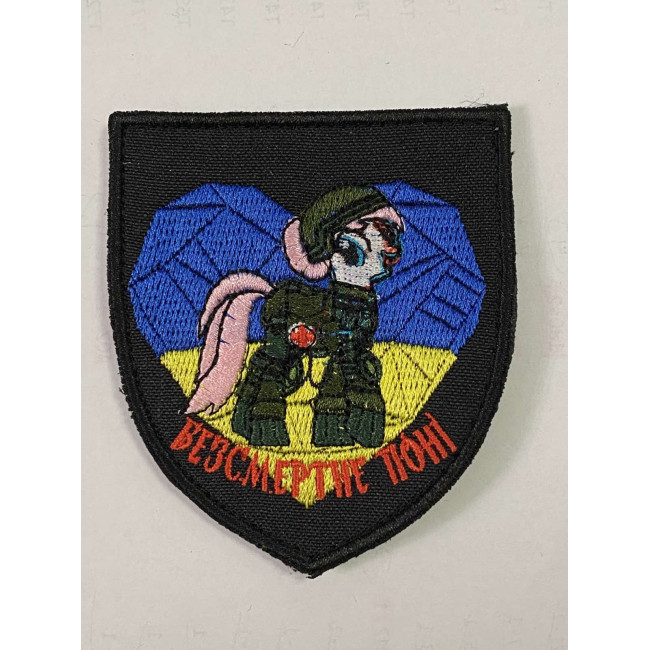 Шеврон "Безсмертне Поні" можливо закріпити на рюкзаку, куртці, жилеті або будь-якому іншому предметі з відповідною поверхнею. Його розмір в 8 х 6 см робить його достатньо великим, щоб бути поміченим, але досить компактним, аби пасувати до різних речей.