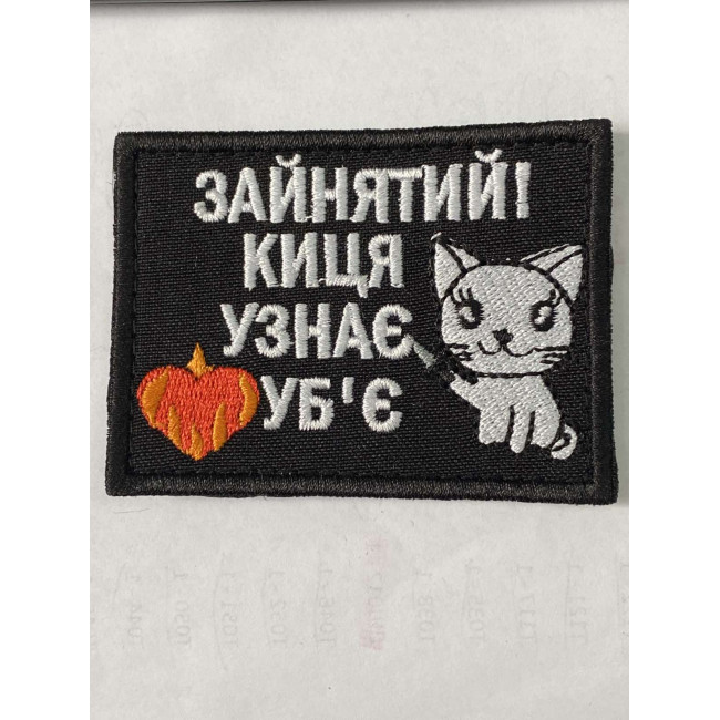 Цей шеврон стане відмінним доповненням для вашого образу або чудовим подарунком для ваших друзів, які цінують індивідуальність та стиль. Його якість і дизайн гуртуватимуть увагу, викликаючи усмішки на обличчях оточуючих. Шеврон "Зайнятий!Киця узнає уб'є" - це більше ніж просто аксесуар, це вираз вашої особистості.