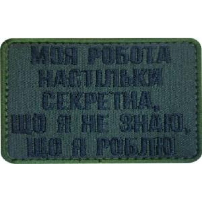 Шеврон SteelCats Моя Робота Настільки Секретна 80на60 / чорна / тк.олива / нарукавна емблема (2921)