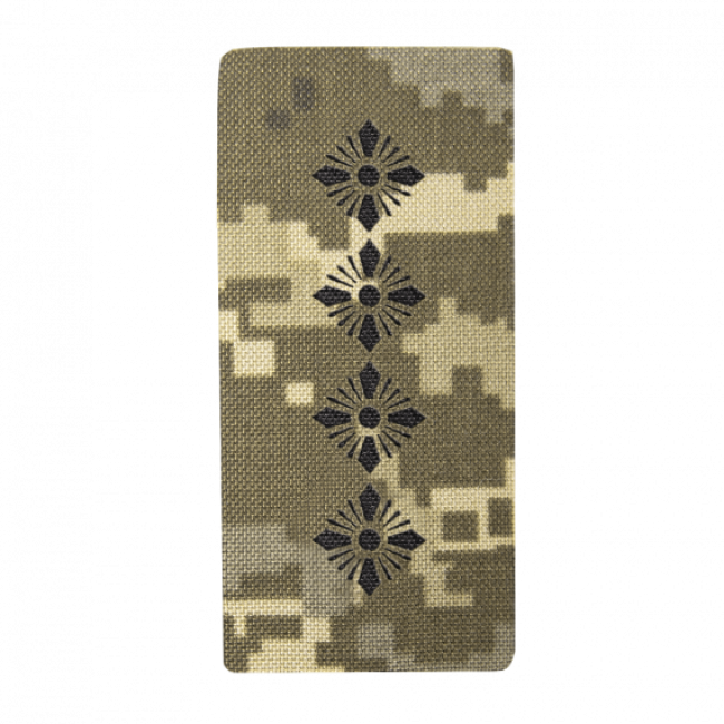 Погони є невід'ємною частиною військової атрибутики, яка відображає ранг та статус військової особи. Погон Камотек Капітан (5*10) Піксель (8791) не тільки відповідає всім вимогам до якості, але й відзначається унікальним дизайном та надзвичайною практичністю.