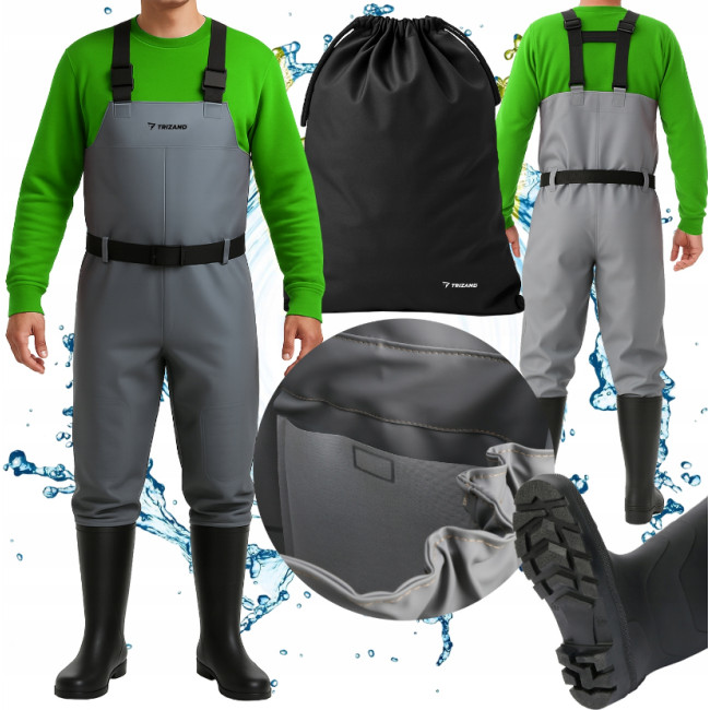 Ці заброди є ідеальним вибором для риболовлі в будь-яких умовах, захищаючи ваші ноги від вологи, холоду та гарячої води. Вони оснащені широким регульованим поясом з пряжкою, внутрішнім водонепроникним кишенею для дрібниць, і еластичними резинками для оптимальної посадки. Сапоги з протектором забезпечують надійне зчеплення навіть на слизьких поверхнях. У комплекті йде практичний фірмовий чохол для зберігання і транспортування Тризанд.
