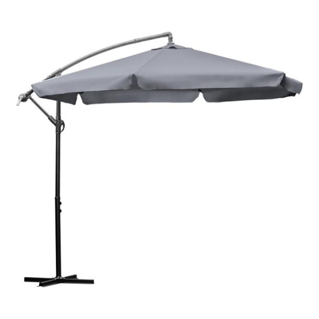 БОЛЬШОЙ СКЛАДНОЙ САДОВЫЙ ЗОНТ 350 СМ, РЕГУЛИРУЕМЫЙ ПО ВЫСОТЕ, СЕРЫЙ, ПРОЧНЫЙ.