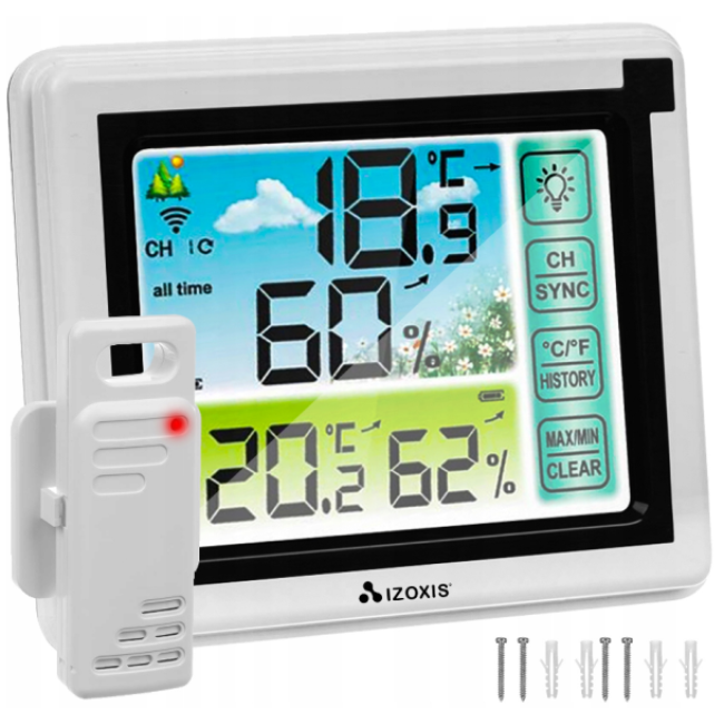 Вам не змінити погоду за вікном, але з бездротовою метеостанцією Izoxis 15746 можна легко дізнатися все про поточні погодні умови. Вона стане незамінним помічником у вашому домі, надаючи актуальну інформацію про температуру та вологість як всередині, так і зовні.