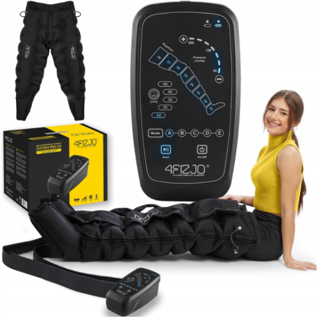 Система 4FIZJO PRO-C8 обладнана восьмикамерною технологією, яка забезпечує точний масаж поверхні та ефективний лимфодренаж до пахових лімфатичних вузлів. Унікальність апарату полягає в можливості налаштування індивідуальних програм, що включають різні режимі масажу від початкового до інтенсивного. Завдяки цьому підходу, ви зможете використовувати пристрій для відновлення після спортивних навантажень, а також для полегшення відчуття дискомфорту у кінцівках.